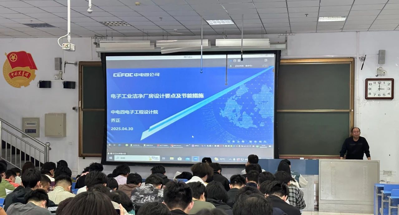 为了提升suncitygroup太阳成集团师生在电子工业洁净厂房设计及节能领域的知识水平与实践认知,促进学术交流与专业发展,2025年4月30日下午3点,由suncitygroup太阳成集团主办的一场精彩的线上学术讲座在明德楼110教室如期举行。本次讲座特别邀请了中国电子系统工程第四建设有限公司的高级工程师乔正,为学院师生带来了一场主题为“电子工业洁净厂房设计要点及节能措施”的专题报告。